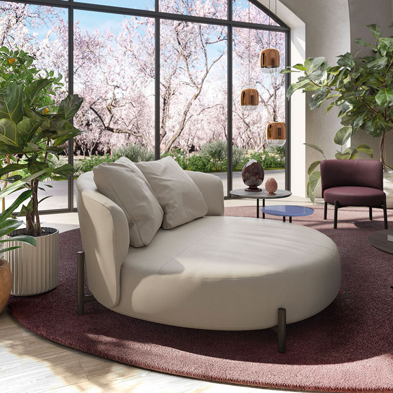 An oasis of pure relaxation, a perfect blend of classical and contemporary styles. A sofa with rounded lines, but also an inviting dormouse, with its simple lines, Amalia steals the limelight in any living room or sleeping area.