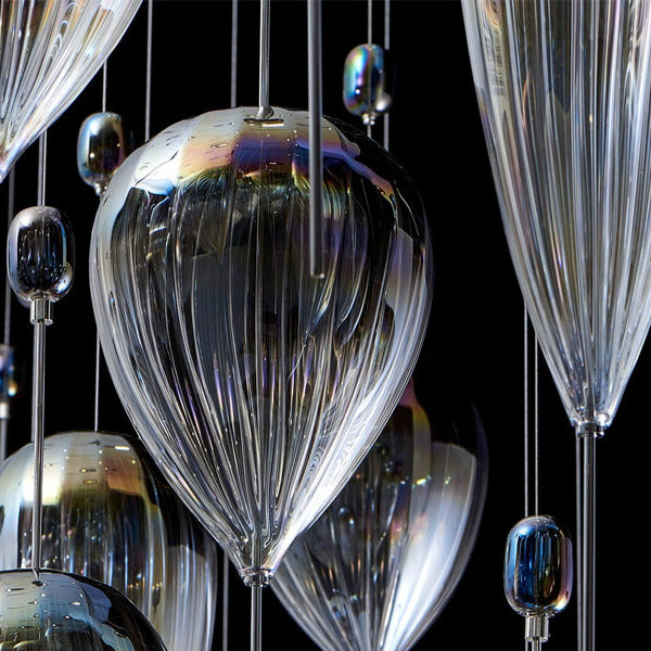 With this installation we want to celebrate the magic of our lands, representing the poetry of one of the most characteristic environments surrounding us: the Venetian lagoon. We’re overhanged by this wave of sparkling refined floating, enlightened by a royal overhead light. It takes your breath away with its magnificence.