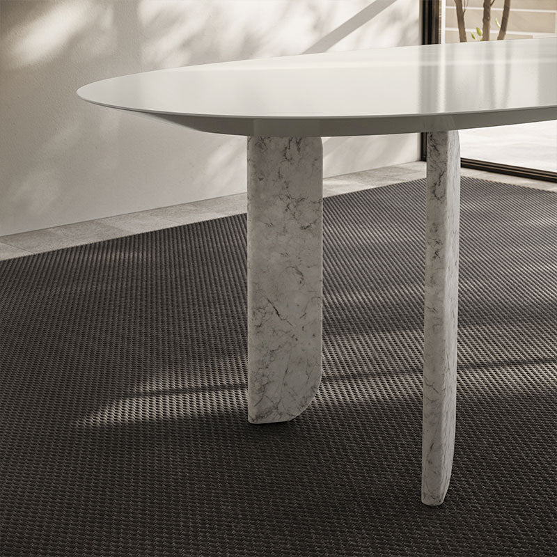 Libra is a table designed by Claudio Bellini for the dining area, characterized by refined and thin lines. The sinuous legs, exceptionally made of marble, play on the contrast between the solidity of this material and the lightness of the design: the project seems to want to defy gravity with the legs apparently balanced on an edge.