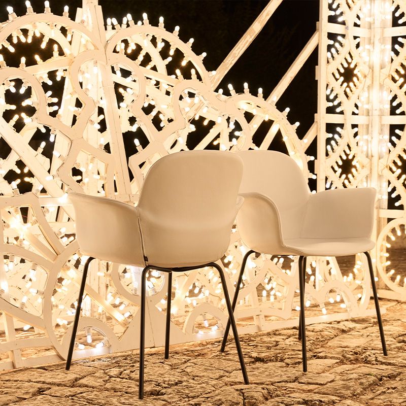 Accommodating and contemporary, the Nanà chair represents a versatile new take on the seat: with its completely upholstered and padded one-piece different frames, it can be paired with four bases to maintain the aesthetic continuity of spaces and perform different functions.